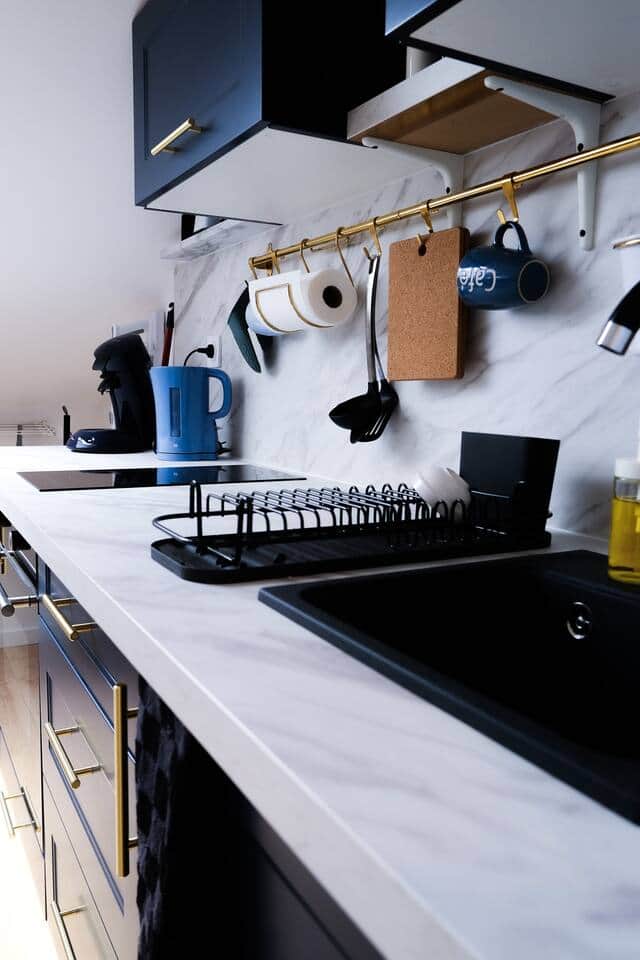 Kinderhochstuhl, Kaffeemaschine, Küchenutensilien, Küchenherd, Kochnische, Mikrowelle, Backofen, Kühlschrank, Toaster, Staubsauger